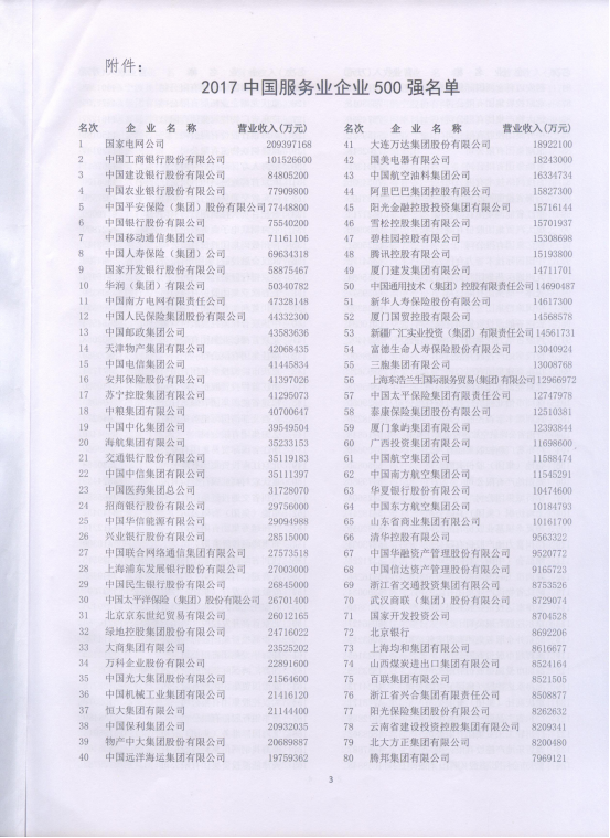 2017年,青海物產(chǎn)在省委、省政府、省國資委的堅強領(lǐng)導(dǎo)和親切關(guān)懷下,在省屬相關(guān)委廳局的熱情幫助和大力支持下,牢牢把握"穩(wěn)中求進(jìn)、改革創(chuàng)新、又好又快"的原則,搶抓機遇,攻堅克難,扎實工作,保持了營收穩(wěn)步增長的良好態(tài)勢,集團再次入圍"2017中國服務(wù)業(yè)企業(yè)500強",排名第397位。
