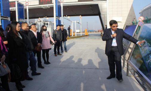 (臨空公司訊?李曉燕/文 鐘雄龍/攝)2017年11月3日上午9時,由省政府口岸辦、青海曹家堡保稅物流中心(B型)管委會及青海省臨空經(jīng)濟區(qū)開發(fā)投資有限公司在青海曹家堡保稅物流中心(B型)聯(lián)合舉辦了青海曹家堡保稅物流中心(B型)推介招商暨青海國際貿(mào)易"單一窗口"(標準版)推廣培訓會,此次會議由海東市政府、省商務廳、西寧海關(guān)、省財政廳、省國稅局、省外匯管理局、青海檢驗檢疫局、青海邊防總隊、海東工業(yè)園區(qū)管委會、省政府口岸辦及70余家進出口企業(yè),約160余人參加。期間,實地參觀了青海曹家堡保稅物流中心(B型)卡口、堆場、保稅倉庫、辦事大廳、監(jiān)控中心。臨空開投公司黨支部書記、副總經(jīng)理葉皓詳細介紹了青海曹家堡保稅物流中心(B型)項目規(guī)劃建設(shè)、項目驗收、封關(guān)運營、業(yè)務模式及投資環(huán)境和運營管理發(fā)展等基本情況,公司副總經(jīng)理賈麗君陪同。