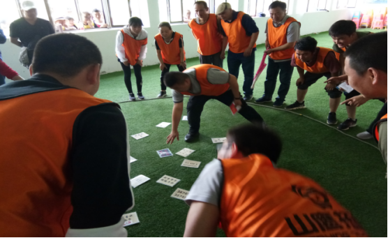 通過系列游戲?qū)胪卣估砟?,同時(shí)建立團(tuán)隊(duì)、選舉隊(duì)長(zhǎng)、編隊(duì)歌、取隊(duì)名、定隊(duì)訓(xùn)、繪隊(duì)旗、做團(tuán)隊(duì)雕塑,做文化展示。隊(duì)員在精神整裝和團(tuán)隊(duì)建立時(shí)充滿信心和激情的表現(xiàn),體現(xiàn)出青海物產(chǎn)汽貿(mào)團(tuán)隊(duì)已整裝待發(fā)、破冰起航。