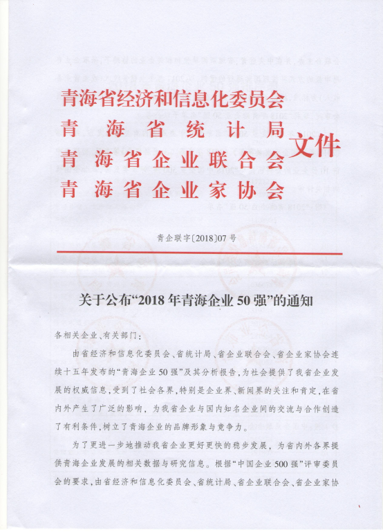 (集團總經(jīng)辦?訊 戴淑琳/文)2017年,青海物產(chǎn)緊緊圍繞"穩(wěn)中求進"工作總基調,全面落實五大任務新措施,主動適應經(jīng)濟發(fā)展新常態(tài),積極融入"一帶一路"建設機遇期,全力以赴創(chuàng)收增效,全力推動項目建設,全力促進轉型升級,保持了營收穩(wěn)步增長、效益穩(wěn)步提升、項目平穩(wěn)推進、結構不斷優(yōu)化的良好態(tài)勢。近日,青海省經(jīng)濟和信息化委員會、省統(tǒng)計局、省企業(yè)聯(lián)合會、省企業(yè)家協(xié)會聯(lián)合印發(fā)了《關于公布"2018年青海企業(yè)50強"的通知》(青企聯(lián)字〔2018〕07號),青海物產(chǎn)再次入選青海企業(yè)50強,名列第12位。