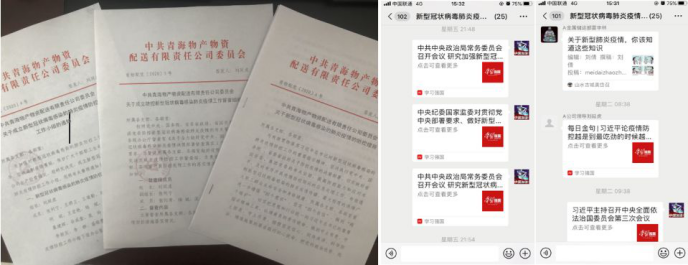 公司黨委按照"早發(fā)現、早報告、早隔離、早治療"的要求,立即啟動應急響應機制。一是在第一時間,成立以黨委書記為組長的新型冠狀病毒感染的肺炎防控工作小組和防控新型冠狀病毒感染肺炎疫情工作督查組,統(tǒng)一指揮協(xié)調疫情防控工作。二是所屬黨支部、團支部分別成立黨員突擊隊和青年突擊隊,奮戰(zhàn)疫情防控第一線,充分發(fā)揮黨支部戰(zhàn)斗堡壘、黨員先鋒模范、團員青年骨干作用。三是制定《新型冠狀病毒感染的肺炎疫情防控措施》,成立統(tǒng)籌協(xié)調、輿情監(jiān)控報道、后勤保障、安全保衛(wèi)等4個工作小組,明確職責分工、統(tǒng)籌推進工作落實。四是利用微信建立新型冠狀病毒感染的肺炎疫情防控工作小組群,多頻次、高密度交流工作情況、研究分析疫情、查找薄弱環(huán)節(jié)、商定下步工作舉措,各項防控工作有序開展。截止目前,公司領導、員工分享了52條衛(wèi)生防疫知識,讓大家對新型冠狀病毒感染的肺炎疫情有了更充分的認識和更有效的防范措施。