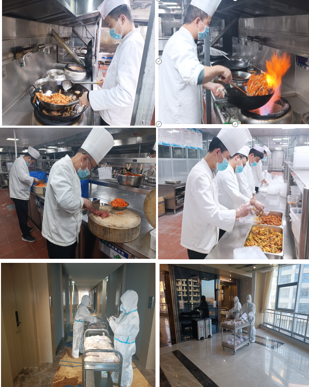 “疫情防控工作專班及高速卡口工作防疫逆行者們不顧危險奔赴一線,我們當(dāng)仁不讓為他們保障后勤!”每一位職工服從公司統(tǒng)一指揮,堅守自己的工作崗位。每天凌晨3點(diǎn),廚房里就開始熱鬧起來了,切菜、掂勺、出鍋、裝盒……廚師們戴著口罩、帽子、手套,“全副武裝”地站在操作臺前,有條不紊地開始為“最美逆行者”每日三餐忙碌準(zhǔn)備,保障防疫逆行者們在酒店期間能安心食宿。