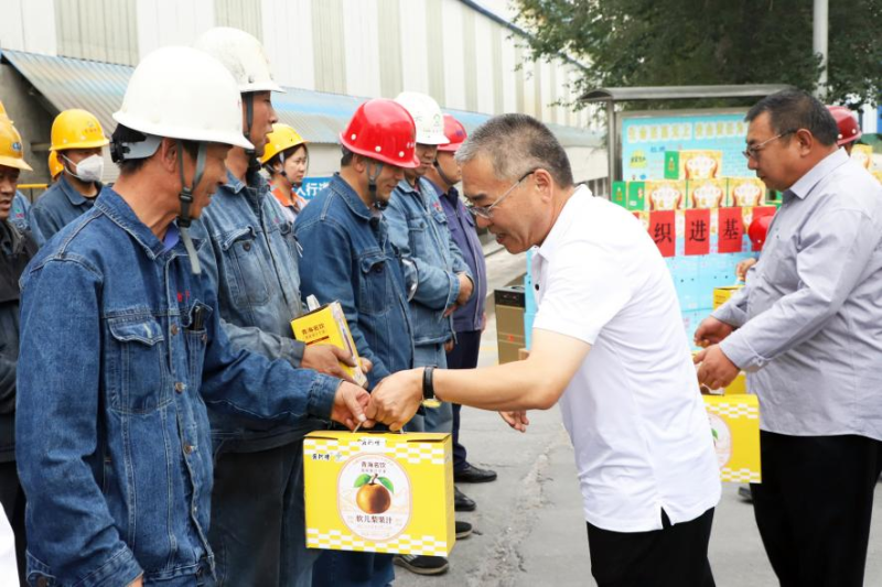 夏日送清涼,點(diǎn)滴沁人心。8月14日,青海省總工會(huì)紀(jì)檢監(jiān)察組組長祁維正,省總工會(huì)二級(jí)巡視員張文輝等一行3人蒞臨青海物產(chǎn)工業(yè)投資有限公司開展“夏送清涼”慰問活動(dòng),為夏日高溫下的一線職工送去組織關(guān)懷。集團(tuán)副總經(jīng)理、工會(huì)主席張?jiān)手业认嚓P(guān)人員陪同。