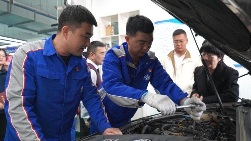 在汽車維修現(xiàn)場,汽貿(mào)公司“售后服務(wù)黨員突擊隊”為交通運輸學(xué)院老師的車輛做了全方位、專業(yè)的汽車保養(yǎng)售后服務(wù)。一張“檢查安全維護十二項”的保修單就是公司開展“上門服務(wù)”的“清單”,逐一列上了車輛維修保養(yǎng)的詳細內(nèi)容和對客戶的承諾,還幫助客戶將以后用車中的注意事項做了全面梳理。由于這次服務(wù)對象,都有一定的汽車專業(yè)性知識儲備,所以在邊做維修服務(wù)的同時,工匠們與老師們交流了各品牌車輛的保養(yǎng)、檢測、改裝等方面的內(nèi)容,對今后的工作方向有了新的思考。